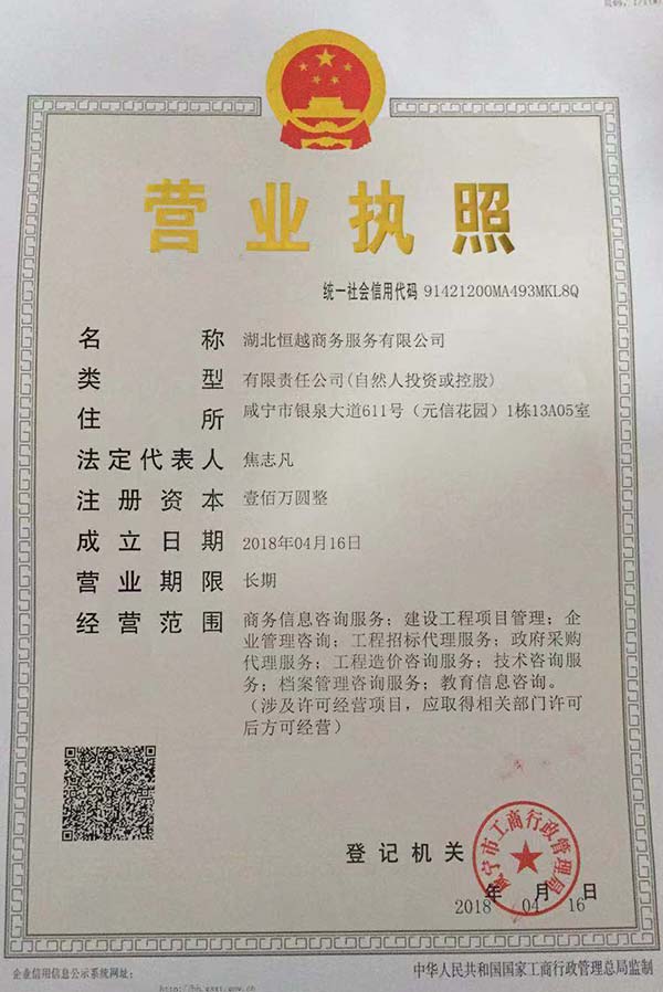湖北恒越商務服務有限公司是成立于湖北省咸寧市的專業工程咨詢公司。公司立足當前、穩步發展,公司具體經營業務范圍概述如下—— 工程招標代理 政府采購代理 商務信息咨詢 工程項目管理 企業管理咨詢 工程造價咨詢 技術咨詢服務 檔案管理服務 教育信息咨詢 公司現有一批高素質的精英團隊,匯集了多名學識高、能力強、經驗豐富的中高級技術及商務管理型專業人才。 公司始終堅持“精誠服務,誠實守信,以人為本,業精于勤”的管理理念,提倡以市場為導向,以為客戶提供全過程、高水平、深層次的招標采購代理服務等商務咨詢服務為宗旨,積極滿足廣大客戶的各種專業需求,為社會做出更多的貢獻。 公司秉承“開拓創新、信譽第一、質量為本、打造一流”的執業理念,我們始終堅持以領先行業為目標、以品牌為主線、以文化為核心、以人才為根本、以科技為動力,不斷優化管理、提升效益、增強企業核心競爭力,力爭將公司打造成湖北省最好的商務咨詢服務類企業之一。